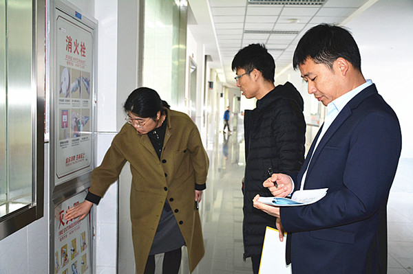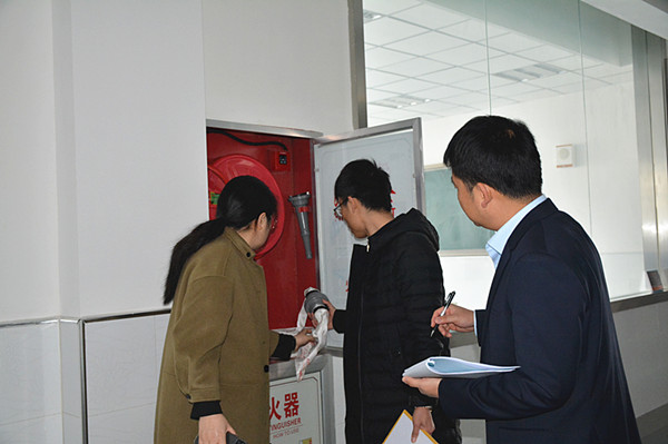 主任室检查组一行对经贸的实训区、教学区和学生宿舍重点部位都进行了检查。重点排查了用电、消防、防盗等环节的安全隐患。查看了消防配备是否符合要求、灭火器是否在使用有效期范围内、实训工具的摆放是否存在安全隐患,室内室外用电是否乱接乱搭电线。检查组排查细致认真,“不漏一处,不留任何死角”。针对排查出的安全隐患问题,检查组进行了记录和总结,第一时间反馈到责任人,现场讨论出整改办法,力求做到立查立改。
