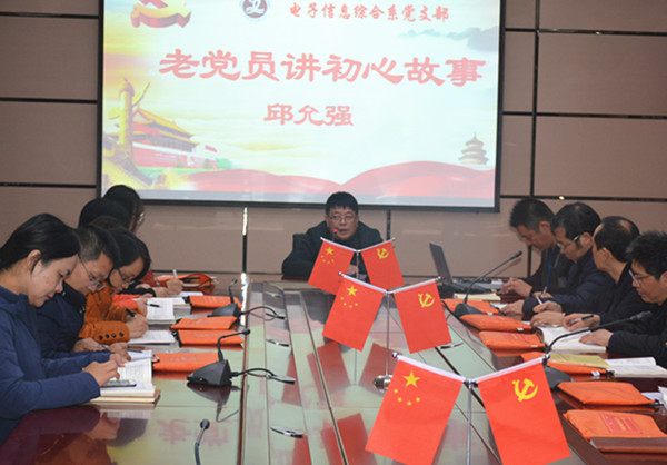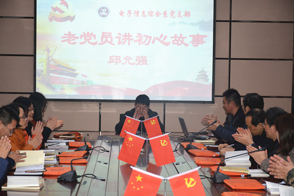 伴随着党员同志们的一声声惊叹,12月17日上午10点,电信系党支部开展了一次老党员话初心活动。此次活动邀请了电信系退休党员邱允强老师来为全体党员讲他的初心故事。邱老师受到了党员同志们的热烈欢迎。