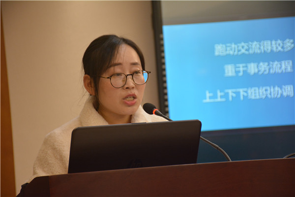 科研部副主任顾佩佩首先开讲,她以思辨的语言,阐明了对“管理”一词的独特理解,认为管理是一门实践的艺术,跨界换岗是一种挑战,是一次适应,更是一次学习和历练,要尽可能增强自己应对不确定的能力。中层副职的工作同样需要发挥团队的优势,布置和完成任务的时候也要将工作要求交代清楚。