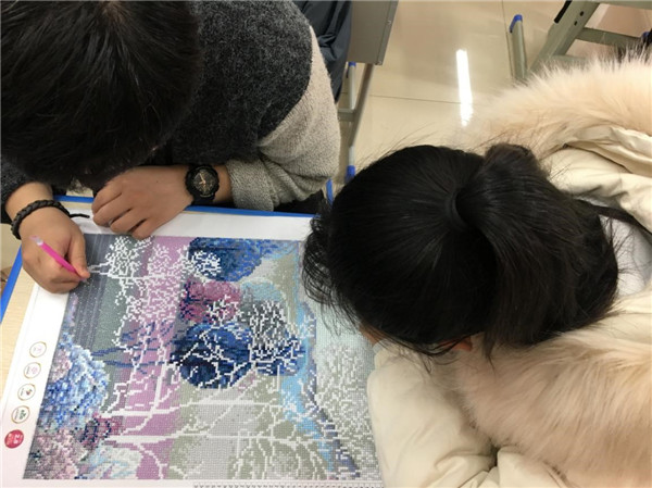 为了提高学生们的审美能力和艺术素养,丰富校园文化生活,美化校园环境,促进学生的全面发展,本学期16TD01的同学们组建了炫彩钻石绣社团,活动开展时间是每周二下午6、7两课。