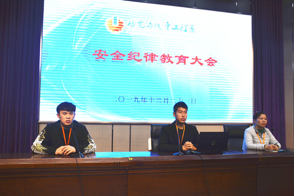 为进一步强化学生安全守纪意识,加强期末学生宿舍管理,12月24日中午12点20分,机电系学生会组织各班班长和宿舍室长在文苑楼报告厅召开了期末宿舍安全纪律教育大会。会议由机电系学生会纪检部部长龚凌威主持,机电系学生会主席团成员陈李坤参加会议,会议邀请宿舍管理员孙佩钰出席并就宿舍管理提出相关要求。