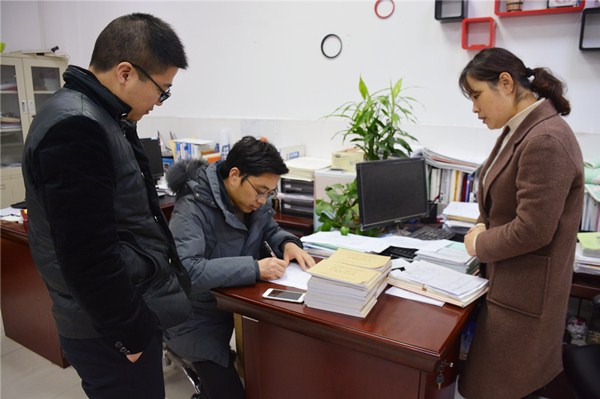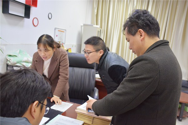 12月26日下午15:20,装备信息部熊伟民主任以及纪红兵、李菲飞两位副主任,对财贸系本学期以来实训常规管理工作进行检查。王飞主任和朱娟副主任热情接待。