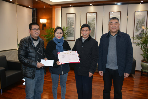 12月27日下午海门市海门港新区城河村第一书记俞国权,审计局老干部、党支部书记张祖平前来我校为陆馨怡同学颁发荣誉证书,校党委书记宋健进行接待。俞国权书记和张祖平书记对陆馨怡同学表示祝贺,宋健书记对她提出了殷切地希望,希望她能以此为契机,再接再厉,将爱国情落实在学习生活中。