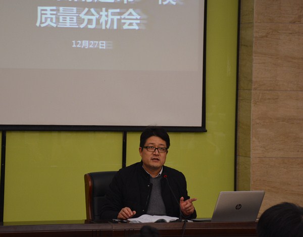 首先,王主任对南通市一模考试进行了分析。他从本科上线率、第一名分布、前十名分布、全市匹配度、专业强弱等方面,对各专业在兄弟学校中的排名进行横向比较。因本次数学均分第一,所以为本科上线率第一奠定了基础。王主任在充分肯定17级全体师生努力付出的同时,也强调了要理性看待本次考试的得与失。在对各专业进行学科分析时,王主任还特别强调指出各专业班级的部分文化学科,在后阶段要正视问题、找出办法、靶向发力、落实行动。