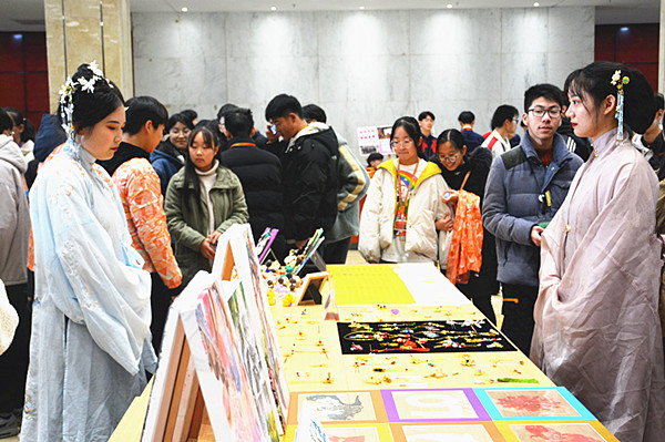 丰美石榴子,炫彩嘉年华,风采社团,一期一会,文化互鉴,你我共赏。 12月30日,海门中专社团嘉年华成果汇报静态作品展在A 楼底楼大厅精彩亮相。来自六大系部62个社团以流光溢彩的静态作品充分展示了社团活动成果。校长徐忠、校党委书记宋健、副校长茅一娟等领导为他们热情打卡。 本次社团展示,作品丰富,形式多样。或精描细画,线条与色彩的完美搭配富于美感;或精心搭建,科技与时尚的融合创造出明朗的现代感;或笔走龙蛇,不失风骨的中国字堪比字帖;或秀色可餐,色香味形俱全的糕点让人流连忘返…… 建工系和机电系的乐高搭建将梦想殿堂完美得呈现,炫酷的外形,精细的内饰,将豁达大气淋漓展现;信息系“饰界”展示,无论是式样丰富的生活化发饰,还是古韵古风的古典装饰,都以巧取胜,可谓“七窍玲珑”;经贸系的“品味生活,焙感幸福”,晶莹剔透的杯盘,配以形态各异的美味,充满了爱的味道;财贸系的“奇点机器人”, 满满科技元素,创新、探究、合作、拓展氛围浓郁。 展演吸引了众多观众,展台前人头攒动,他们或驻足欣赏,或跃跃欲试想“占为己有”;展厅内其乐融融,讲解员热情解说。前来参观的老师说:“平时只是在封闭的课堂中进行训练,原以为‘囊中羞涩’,却是“深藏不露”啊!” 本次社团静态展示历时一天,学工部工作人员、系部德育主任和学生代表组成的评审团对62个社团作品进行评分,评选出2个“精品社团”、7个“优秀社团”,现场汇展占比70%、台账资料占比20%、本学期所作贡献及日常训练等占比10%。 下午4点,静态作品汇展落下帷幕,但每个社团展现出来的精彩将永远留存在同学们的记忆中。(黄 娟)