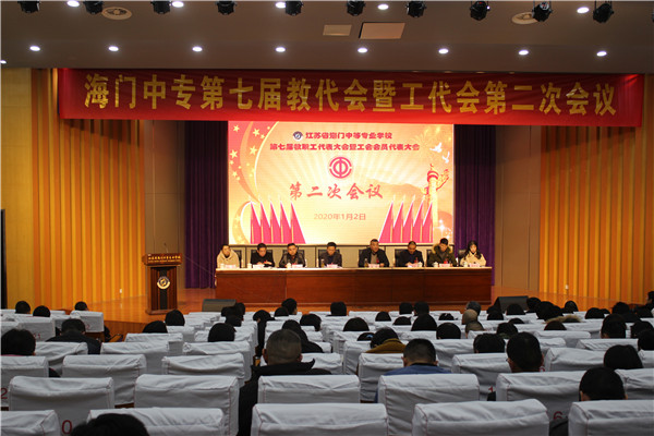 1月2日上午8点半,我校第七届教代会暨工代会第二次会议在B1楼文苑报告厅隆重开幕,110多名代表出席大会,大会由工会副主席赵建平主持。 仪式隆重 过程规范 本次大会分为预备会议和正式会议两大部分。预备会议表决通过了我校第七届“双代会”第二次会议议程(草案)。正式会议共有九项议程。正式会议在雄壮的国歌声中拉开帷幕,整个会议思路清晰、过程规范。 校长报告 拨雾领航 徐忠校长代表校长室作题为《登高望远 领航发展 推动学校事业高原之上再创高峰》的学校工作报告。徐校长指出,2019年,我们牢牢聚焦一个中心目标,全力做好领航学校申报工作;紧紧围绕一根主线,努力推动学校事业高质量发展;精耕细作三大领域,有力促进教育、教学、后勤管理质效显著提升,成功创造了学校办学质量、办学声誉的新高度。在“基层党建、主题教育、项目创建、师资队伍、教育科研、文化建设、学生管理、校企合作、对口高考、后勤服务、社区教育”等各方面工作都取得了令人瞩目的成绩,全校师生以奋进者的姿态,一路接力跑,实现了质量提升新跨越。 回看2019,总的来说,困难比预料得要多,成果比预想得要好。全校师生用坚定的政治方向、勤奋的工作表现、踏实的工作作风、卓越的办学成绩擦亮了海门中专的品牌。 工会报告 强基固本 工会主席肖冰作了题为《学习新思想 展现新作为 建功新时代 团结动员全校教职工奋力实现学校新发展》的工会工作报告。2019年,学校工会紧紧围绕学校中心工作,认真履行工会职能,动员和组织广大教职工积极投身到学校民主管理、师德师风建设、和谐校园建设、工会自身建设等工作中,努力为广大教职工办好事、办实事、解难事,成为全体教职员工最可信赖的“娘家人”,也为构建和谐校园、促进学校稳定发展做出了贡献。学校工会被海门市总工会授予“海门市职工之家建设示范单位”荣誉称号。 领导班子述职 尽显使命担当 根据会议议程,校级领导班子成员向全体代表作述职述廉报告。徐忠校长和宋健书记将在全校教职工大会上进行述职述廉,班子其他成员依次发言,全面回顾分管工作,回望总结2019年所获成绩。凡是过往,皆为序章。2020年,海门中专将继续努力,高举习近平新时代中国特色社会主义思想大旗,踏实勤干、再开新局、再谋新篇。 审议讨论 发扬民主 大会按照程序对《学校2019年度工作报告》和《学校工会2019年度工作报告》进行分组讨论和审议,经过代表们的认真讨论和充分评议,一致认为,两个报告对学校和工会过去的工作所作的总结,客观、公正、翔实,对今后发展的思路清晰,目标明确,要求具体,具有很强的导向性和可操作性。全体代表对学校工作表示满意,对工会工作表示肯定,并给予高度评价,大会决定批准这两个报告。全体代表还对工会工作、工会主席进行民主测评,并对全校系部、部门工作满意度进行测评。 书记讲话 总结展望 会议最后,党委书记宋健发表重要讲话,充分肯定了2019年学校工作和工会工作。本次“双代会”的召开必将对加快推进学校各项事业高质量发展发挥重要的作用。宋健就做好学校2020年工作提出了三点意见:一是必须坚持立德树人,全面加强党对教育工作的领导,二是必须坚持特色兴校,全面推动高质量发展,三是必须坚持以人为本,全面构建和谐文明校园。 我校七届二次 “双代会”是在全面实现小康社会和“十三五”规划收官的2020年来临之际召开的一次十分重要的会议,大会在与会代表和列席代表的支持下获得了圆满成功!宏伟目标激励人心,时代重任催人奋进。让我们更加振奋精神、昂扬斗志,认真履职、努力奋斗,共同谱写2020学校优质提升、领航发展新篇章!