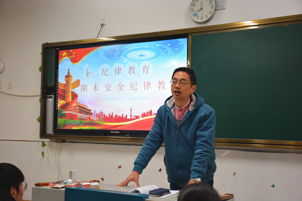 班会课上,班主任重申了各项安全和纪律要求,强调了上课规范、宿舍就寝、手机使用、复习迎考等期末常规以及交通安全、财物安全、用电安全、消防安全,食品安全等要求,要求学生提高思想意识,严明纪律,严把安全关,认认真真做好复习迎考工作,踏踏实实走好期末最后一公里。班主任还组织学生结合近期自身表现围绕班会主题进行讨论,发现不足,及时解决问题,提升自我素养。