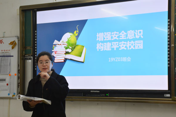 为进一步推进校园平安创建工作,增强财贸系学生的安全防范意识,1月3日上午第一节课,财贸系组织各班开展“增强安全意识,构建平安校园”的主题班会活动。班会的内容丰富,形式多样。各班通过观看视频、小组讨论、知识抢答等多种方式,向同学们普及安全知识,提高同学们对安全工作的认识。班主任围绕校园安全展开,重点向学生普及了校园防盗、防骗等安全知识,认真查找和分析了校园盗窃和诈骗等案件多发的原因,并通过生动的视频和案例提醒同学们时刻树立安全防范意识,班会内容引起了学生的广泛共鸣。安全是学校进行各项教育活动的前提,安全教育还将继续,以此次班会活动为契机,我们将会不懈努力,着力提升财贸师生的安全防护技能和安全防范意识,共同创建平安和谐校园。(图文/徐杨帆、张雅婧)