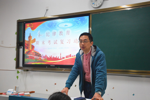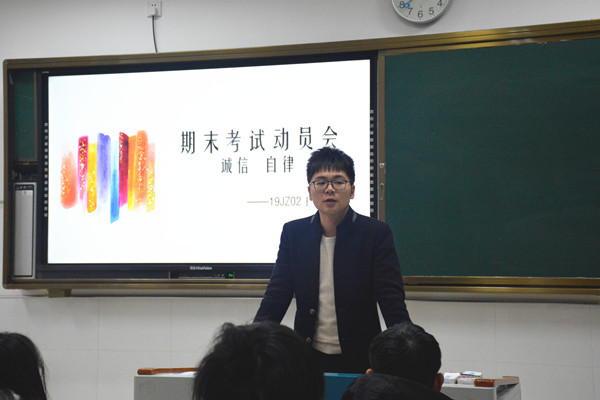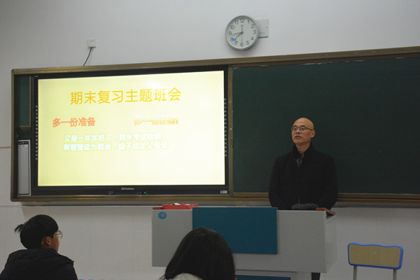 班会课上,班主任精心准备,结合班级实际提出要求。一、思想上高度重视,通过期末考试及时检测知识结构,调整学习方向;二、珍惜时间静心复习迎考,整理、归类,夯实基础;三、诚信考试,文明做人;四、沉着应考,认真答题。班主任不仅在时间上进行细化、强调,使全体学生绷紧复习迎考的神经,更在思想上促使同学们有明确的考试目标,并予以相应的方法上的指导,引导学生制定合理的复习方案,提高复习效率。