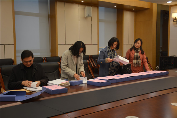 在图文信息大楼百度厅,考核小组认真查看了相关资料,对我校2019年党政各项工作进行更加全面深入的认识和了解。