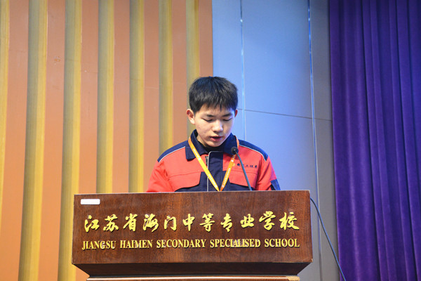 2020年江苏省技能大赛汽车机电维修二等奖获得者、江苏省最美中职生樊晔陈代表获奖学生发言,表达了对学校和老师栽培的感谢,并表示会再接再厉,继续努力争取更大成绩,号召全体学生尚德精艺,苦练本领,为未来铺路,为学校争光。