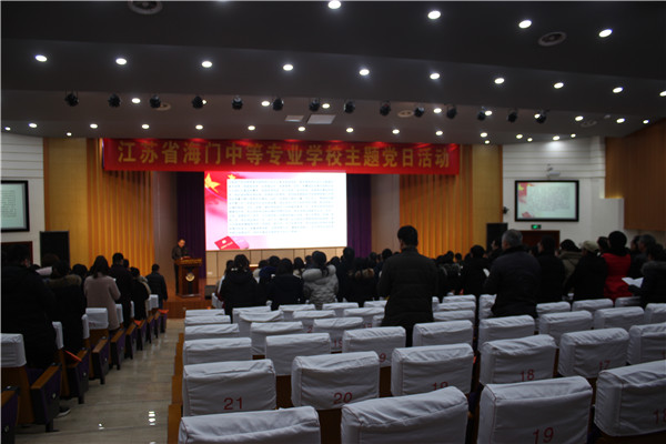 根据海门市委主题教育领导小组和市委教育工委的通知要求,1月15日下午,海门中专在文苑报告厅举行海门中专主题教育总结大会暨1月主题党日活动。市委主题教育第十一指导组副组长、市纪委监委派驻市农业农村局纪检监察组组长宋文华,主题教育第十一指导组成员、市纪委监委派驻市农业农村局纪检监察组副组长陈妹,主题教育第十一指导组成员、市总工会生活女工部科员吴佩华同志莅临大会现场指导。党委委员、党群工作部主任洪龚明主持大会。大会共分三个篇章,分别是总结表彰篇、示范引领篇、动员学习篇。 总结表彰 意气风发 总结,是为了更好的再出发;表彰,是为了更好的弘扬正气。第一项议程,表彰先进。在宣读海门中专2019年度先进基层党组织表彰决定之后,受表彰的4个先进基层党支部的支部书记上台接受领导颁奖。 第二个议程,校党委书记宋健对海门中专“不忘初心、牢记使命”主题教育做总结发言。宋健从五个方面总结我校高站位、高质量、高标准抓好主题教育工作,并取得了良好成效。 接着,市委主题教育第十一指导组副组长宋文华同志点评总结。宋文华充分肯定了海门中专在“不忘初心、牢记使命”主题教育中的优秀表现和取得的丰硕成果,宋文华认为,海门中专主题教育扎实有效,主要呈现四个方面特点:一是突出领导带头示范引领、二是突出学深悟透打牢基础、三是突出动真碰硬真抓实效、四是突出抓牢支部提质增效。 讲话结束后,进行主题教育测评。全体党员本着实事求是的态度,严肃认真填写评价表。主题教育基本结束,但“不忘初心、牢记使命”是一辈子的精神追求,全体党员同志要始终做到初心如磐、使命在肩,汇聚起学校发展征途上重整行装再出发的磅礴力量。 示范引领 高山仰止 榜样的力量是无穷的,先进人物本身就是一部催人奋进的教科书。第五项议程,晒晒身边的共产党员之先锋大讲坛。崔丹丹、金鑫、吴慧娟,三个普通党员的事迹让全体党员深受鼓舞。她们立足岗位实际,用忠诚推动担当,不断地遇见更优秀的自己。 动员学习 摩拳擦掌 日前,根据海委宣〔2020〕4号文件精神,要求在全体党员中开展新一轮冬训。第六项议程,校党委副书记周桂岐同志为海门中专全体党员做冬训动员。明确冬训要求,各支部将严格根据任务内容、标准和时间节点,深入推进冬训工作顺利展开。 第七项议程,集体冬训——学习党章。全体党员通过党章知识微视频的观看学习、党章诵读学习,零距离接触党章,深入领会党章要义。 最后,全体齐唱《没有共产党就没有新中国》,在嘹亮的歌声中本次主题教育总结大会圆满结束。 主题教育基本收尾但永不结束,我们积极响应指导组要求,继续在理论武装上下功夫,把学习贯彻新思想不断引向深入;继续在整改落实上下功夫,让群众感受到新变化、新成效;继续在建章立制上下功夫,巩固和拓展主题教育成果;继续在服务大局上下功夫,扎实推动高质量发展走在前列。