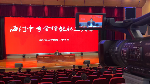 4月29日下午,海门中专采用视频直播方式召开全校教职工大会。徐忠校长结合南通市教育工作会议精神,全面总结开学以来学校工作,及时部署下阶段各项重点任务,并对“五一”假期学校防疫工作提出具体要求。