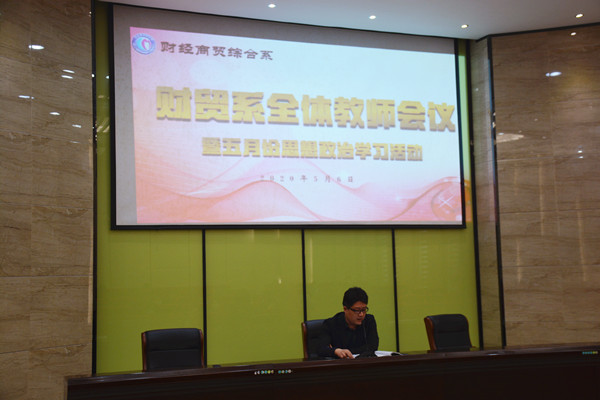 5月6日上午9:10,财贸系在謇公楼名匠报告厅召开了全体教师会议暨五月份思想政治学习活动,会议由王飞主任主持主讲。
