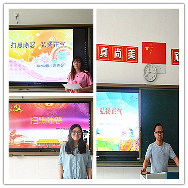 为了让学生们认识到黑恶势力、违法犯罪给社会带来的危害,宣传打击黑恶势力和违法犯罪的重要性。5月18日上午第一课,经贸系各班组织开展了“扫黑除恶、弘扬正气”的主题班会活动。