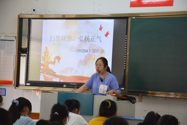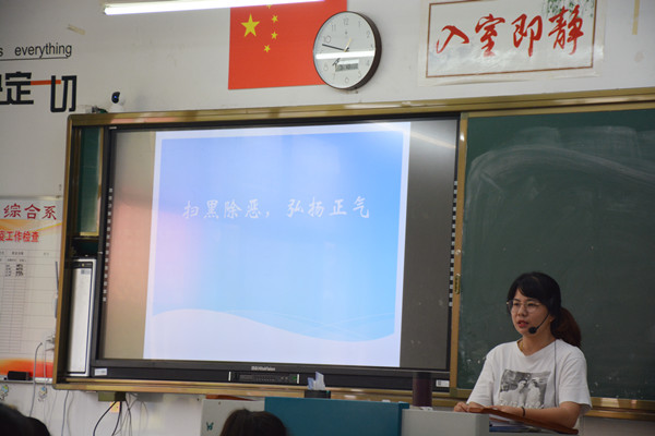 此次主题班会活动的开展,提高了学生的法律意识,了解到黑恶势力的危害,坚定了远离黑恶势力的决心,同时也增强了学生的文明守纪意识,提高了抵制和防范校园欺凌的能力,为维护校园安全稳定,切实保障师生安全提供了有力的保障。(图文/徐杨帆、张雅婧)