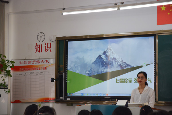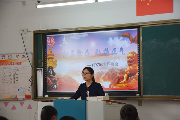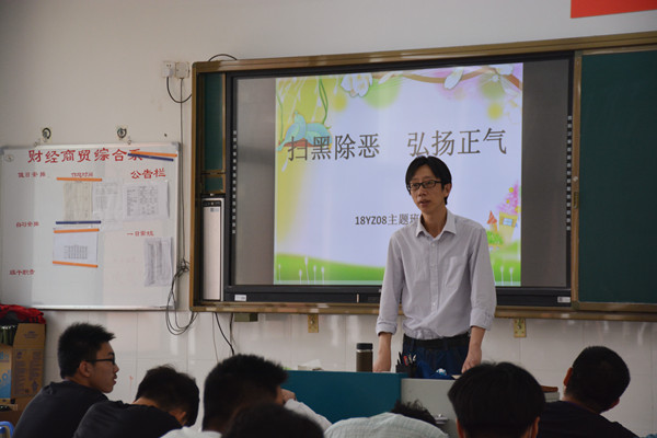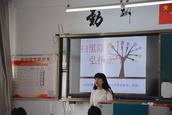 为深入贯彻落实中央扫黑除恶专项斗争,推动“扫黑除恶”专项斗争工作深入开展,加强同学们的自我保护意识,保证同学们日常各方面的安全,5月18日上午第一节课,财贸系组织各班开展了“扫黑除恶、弘扬正气”主题班会活动。