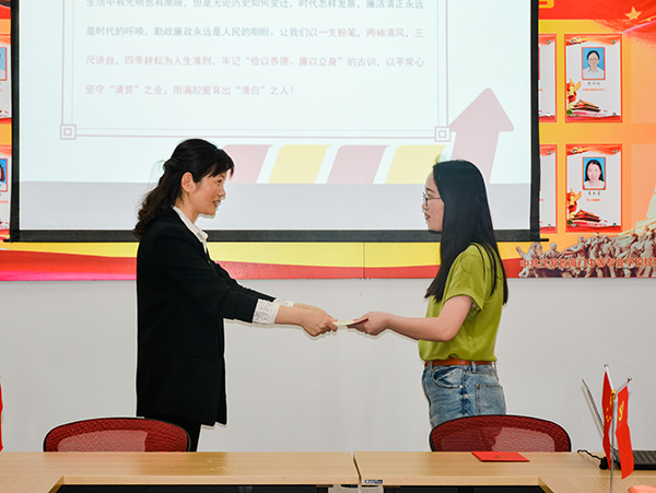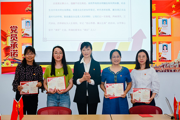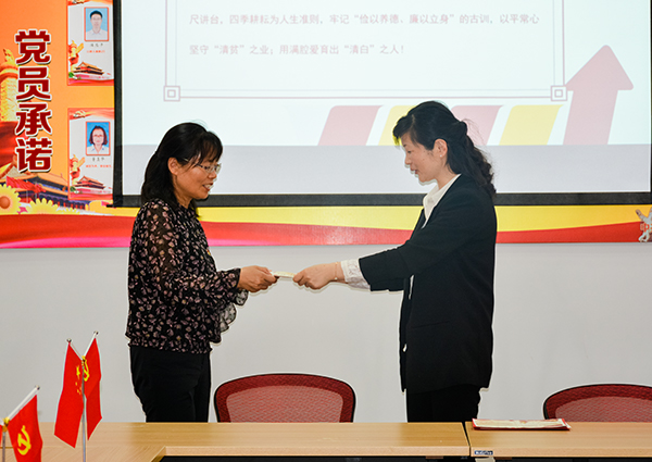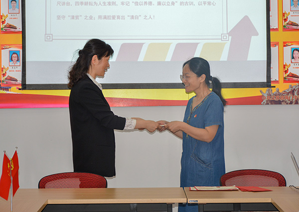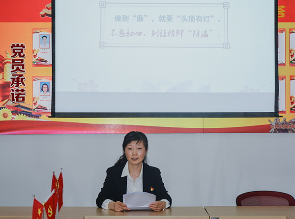 内容二:党委委员茅一娟副校长上《 以平常心守“清贫”之业 用满腔爱育“清白”之人》的廉政专题党课。告诫和提醒全体党员知廉洁理、教廉洁书、干廉洁事、做廉洁人。要忠诚党的教育事业,履行教书育人职责,不利用工作之便收受学生家长的礼金和接受学生家长的宴请;不向学生推销任何商品,不强制购买教辅资料;不擅立明目乱收费,不办有偿补课辅导班。严格遵守教育法律法规,修身立德,廉洁从教,为教育发展、国家繁荣和民族振兴努力奋斗!