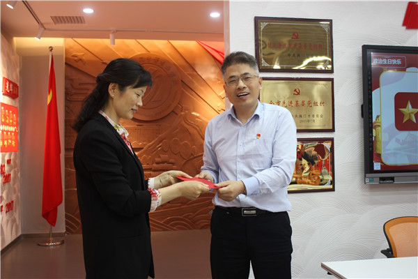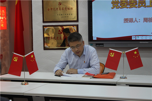 根据海门中专党委5月份“主题党日”活动安排,5月15日下午2:30,行政党支部于在11楼砥砺厅开展了“坚定理想信念、筑牢纪法底线”主题党日活动。支部全体党员参加了此次活动,活动由支部书记洪龚明主持,共有四项内容。党委委员以普通党员的身份参加了本次组织生活会。 第一个内容是“过生日,忆初心”。5月是支部党员茅一娟的政治生日月。党委副书记周桂岐为茅一娟送上生日贺卡并表示祝贺,随后茅一娟带领全体支部党员紧握右拳一起重温入党誓词,最后茅一娟发表生日感言,以“寻找更好的自己”为主题进行了三个方面的交流:一是坚定理想信念,加强理论学习,坚定共产主义信念;二是进一步增强服务宗旨,服务好广大师生;三是进一步加强组织纪律观念,充分发挥先锋模范作用。 第二个内容是“上党课,尚廉洁”。周桂岐以《以平常心守‘清贫’之业、用满腔爱育‘清白’之人》为题给大家上了一堂专题党课。周桂岐指出,做到“廉”,就要“头顶有灯”、“心中有怕”、“肩上有铁”,党员教师要以一支粉笔,两袖清风,三尺讲台,四季耕耘为人生准则,牢记“俭以养德、廉以立身”的古训,以平常心坚守“清贫”之业;用满腔爱育出“清白”之人。 第三个内容是“学理论,增本领”。支部书记洪龚明带领全体党员学习《娄勤俭在全省2019年度高质量发展总结表彰大会上讲话精神》。洪龚明指出,文中提到的“比、学、赶、超”值得每个教育工作者学习和借鉴。全体支部党员需坚定信心、迎难而上,为建设“强富美高”新海门和“江苏省领航学校”作出更大贡献。 第四个内容是“谈感悟,悦分享”。张海华、熊伟民和赵建平分别作交流发言。张海华结合自身多年的入党经历谈了自身的感悟,真情流露,真心告白;熊伟明结合“强富美高新江苏”提出了“强富美高新海专”的自我见解,并吐露心声愿意为学校发展贡献自身力量;赵建平结合近期参加南通市教学大赛的经历分享感悟,并对自身提出了更高的要求。三个人的表态虽不同,但都蕴含了对学校和对职教事业的无比热爱。 最后,支部书记洪龚明对“党费缴纳”、“学习强国”、“廉政知识测试”、“干部进社区”等内容进行了布置和提醒,通过具体化、可操作的学习计划将自己变得更加美好。(党群工作部 姜彦辰)