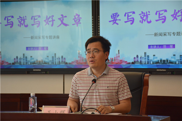 为提升学校新闻通讯员的写作水平,提高学校专业化新闻通讯员队伍的整体素养,5月20日,海门中专特邀海门市新闻工作者协会主席、海门市作家协会主席,原《海门日报》社总编辑范军作《要写就写好文章》的新闻采写专题讲座。各系部、社区学院负责宣传工作的同志、全体通讯员老师,以及部分对新闻采写感兴趣的老师听取了本次讲座。