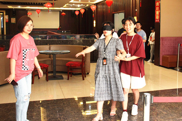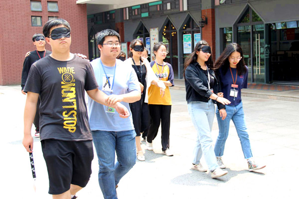 在“马兰花开”的游戏中,同学们在老师和引导同伴的帮助下进行盲行,在循序渐进的交流过程中加强同伴之间的交流,进而强化安全感和信任感。“沟通”在人际交往中的作用和意义得以全面体现。小游戏结束后,同学们畅谈各自体会,他们表示“第一次感觉到沟通有这么大的力量,能够给人带来温暖,以后会更加重视跟别人做好沟通”。