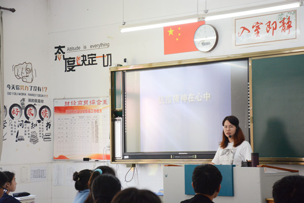 班会课上,各班都做了精心的准备。班主任宣传了抗疫一线医护人员的先进事迹、抗疫故事等。一场灾难,让人们疲惫不堪,却也让人们紧紧相拥在一起。医护人员、社区工作者、人民警察以及数以万计的志愿者们,那些可爱平凡的你我他,共同构筑了抗击疫情的坚固堡垒。一个个真实的故事,让同学们颇为感动,纷纷致敬最美逆行者。“生命重于泰山”,医务人员不抛弃、不放弃任何一个生命,让学生体会到了生命的宝贵。疫情发生以来,中国采取最果断、最有效的措施,最大程度地保护了人民的生命健康权,让大家感受到了大国责任、大国担当!最后班主任为大家细致地讲解了防疫知识,同学们听得仔细、学得认真,希望通过自己一些平凡举动能给祖国的疫情防控添砖加瓦。