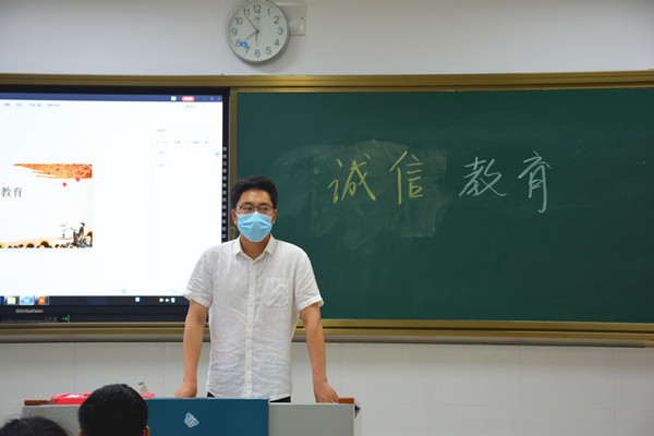 “君子以诚为贵。”诚信是中华民族的传统美德,是每个人的立身之本。班会课上,班主任利用PPT和视频向学生宣传了诚信对于为人处世的重要意义,并联系社会现实,通过对当今社会中的热点话题的讨论以及对失信者心理和失信原因的深入探究,明确了失信问题的严重性,倡导学生自觉走诚信道路。
