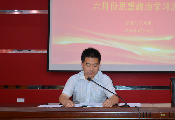 6月16日下午15:30,信息系在H楼报告厅组织开展了六月份思想政治学习活动,本次学习活动由系部主任徐亮主持,系部全体教师共同参加。