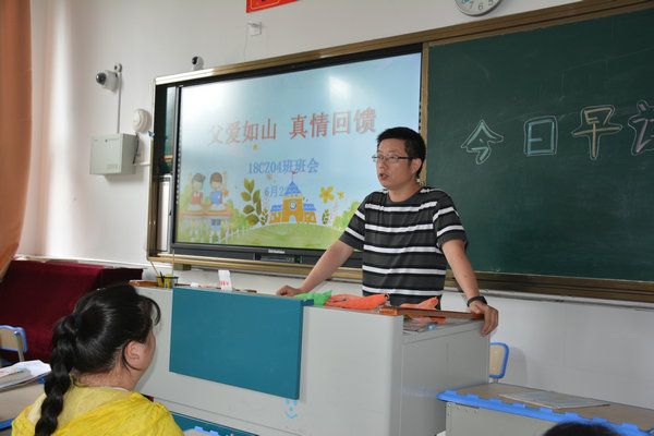 班会活动中,班主任首先介绍了父亲节的来历,父亲节不像儿童节受到众星捧月的待遇;也不似母亲节被人们歌颂赞美;更没有情人节花费时间精力的恋人浪漫。但父爱如山,厚重沉稳,从不张扬。接着,班主任播放了筷子兄弟的MV《父亲》视频,诠释了父爱的伟大。同时邀请学生谈谈自己和父亲的故事,或者说说自己对父亲的感情。通过这个过程让同学和父亲之间的感人故事感染其他的同学从而达到一种情感的共鸣。最后,同学们交流了此次父亲节送给父亲了礼物,好多同学表示以往都忽略了父亲节,本周回去一定要给父亲补过一个父亲节,并在生活中多多体谅父母,为父母分忧!