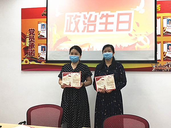 活动三,政治生日。周海莲、尹金珠两位同志收到一份特殊的礼物——政治生日贺卡,这张卡片里记载着入党时间,对做合格党员提出要求,寄予美好祝福。一张小小的贺卡,是对党员的激励,更是鞭策,提醒党员时刻牢记党员身份,时刻牢记党的宗旨和使命。
