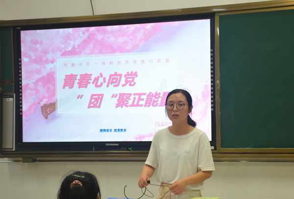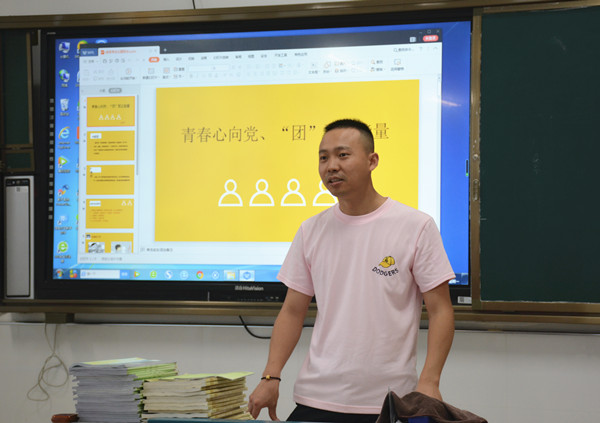 青年,是国家的未来和民族的希望,是社会上最富有朝气、最富有创造性、最富有生命力的群体。班会课上,班主任通过PPT展示、观看爱国主义视频、重温入团誓词等多种形式引导班级成员不忘初心、志存高远、脚踏实地,积极传播青春正能量,树立新青年的正确世界观、人生观、价值观,紧跟时代潮流,勇担时代使命,珍惜青春,充实青春。