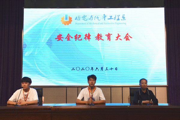 为了进一步加强学生干部安全意识,消除安全隐患,全面普及安全常识,6月30日下午14:00,机电系在文苑楼报告厅召开安全纪律教育大会,会议由学生会副主席陈李坤主持,机电系副主任李海燕发表重要讲话。