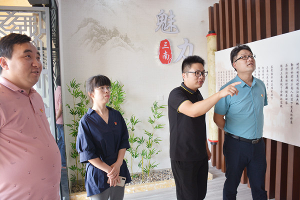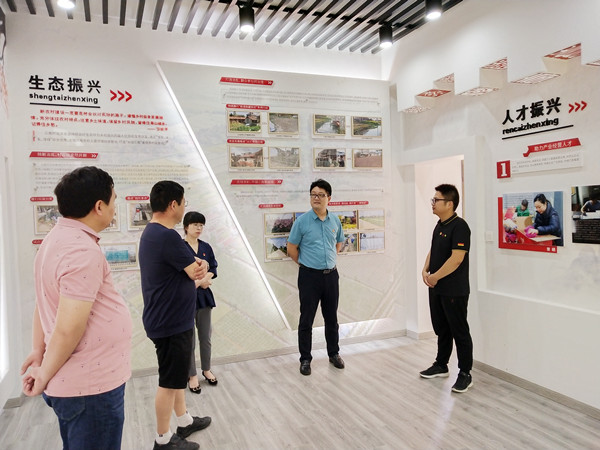 龚书记带领大家参观了“三南桃李春风馆”,介绍了三南村一路发展的历程和成果,特别是在展馆“组织振兴”板块,具体介绍了党建引领对乡村振兴起到的关键性作用。随后,王飞书记也介绍了财贸系支部近几年党建工作情况以及系部专业设置。双方还特别就营销专业人才培养合作事宜进行了初步商讨。