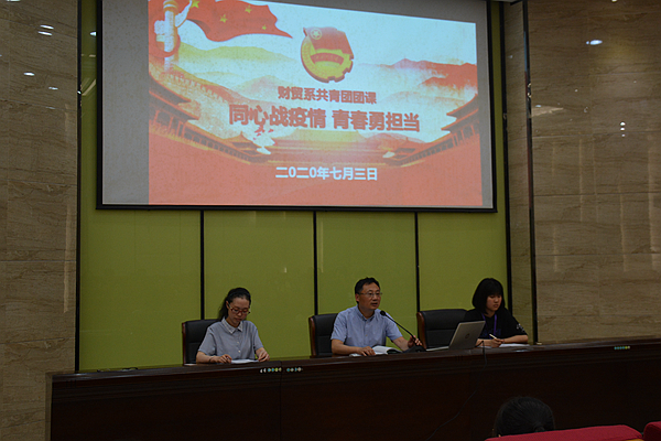 为进一步落实我校疫情防控工作要求,发挥好团的组织和引领作用,做好团员青年的宣传、教育和引导工作。7月3日下午3:20,财贸系组织开展了“同心战疫情、青春勇担当”主题团课活动,18、19级全体团员参加活动。