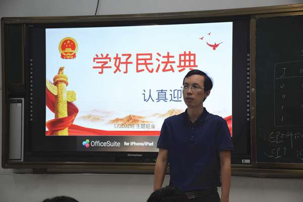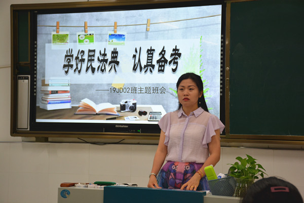 为广泛开展民法典普法宣传,切实推动民法典实施,教育学生树立法律意识,依法保护自身合法权益,做到遵法、学法、懂法、守法,做好期末复习迎考工作,7月6日上午第一节课,机电系组织各班开展了“学习民法典,迎接期末考”主题班会活动。