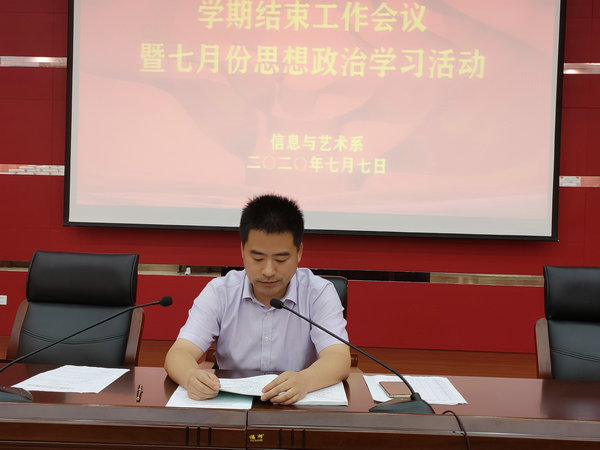 为有序、高效地完成期末各项工作,为本学期画上圆满句号,信息系于7月7日下午15:50在H楼报告厅召开了2019-2020学年第二学期学期结束工作会议暨七月份思想政治学习活动。会议由系部主任徐亮主持,信息系全体教师共同参加。
