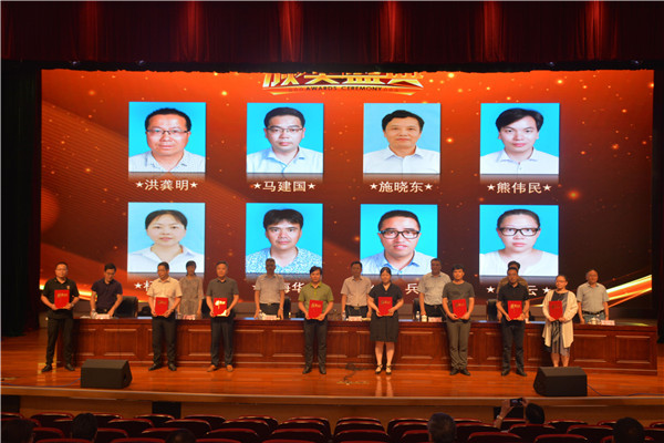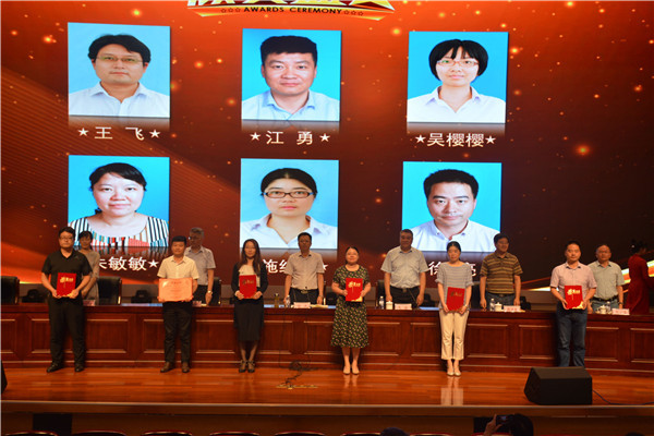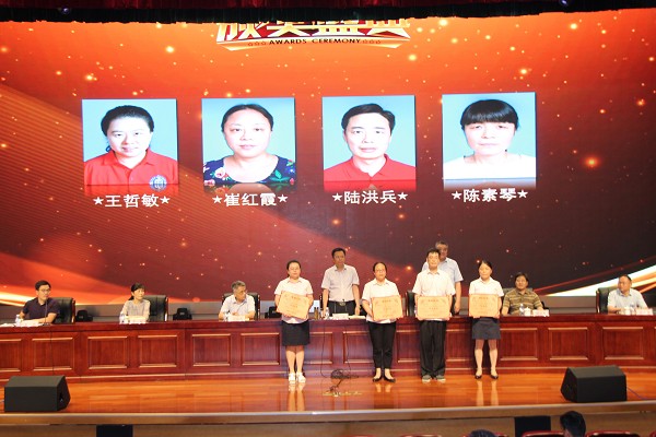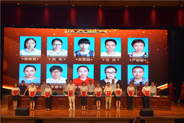 校党委书记宋健宣读表彰决定,校长室全体成员为他们颁奖并合影留念。