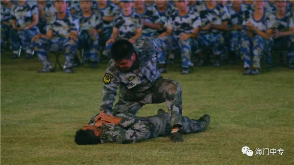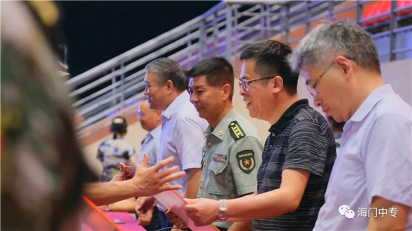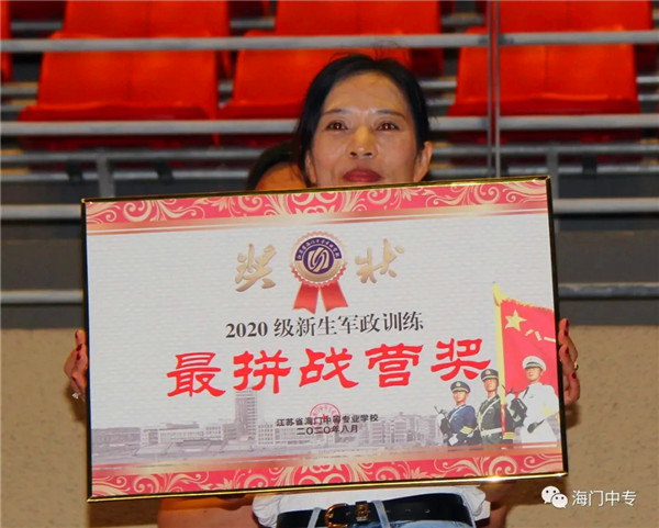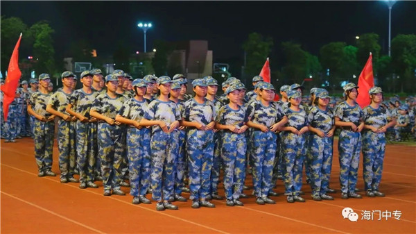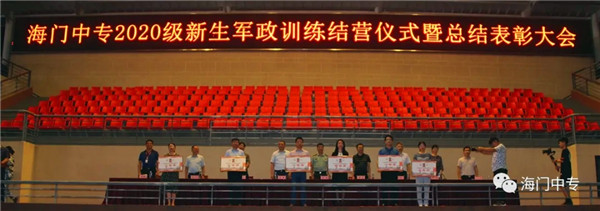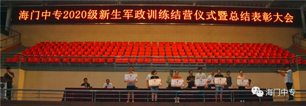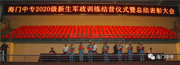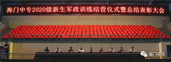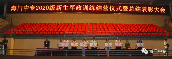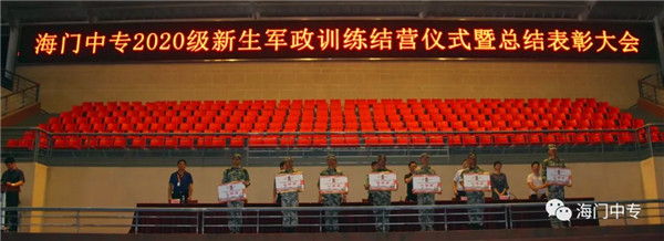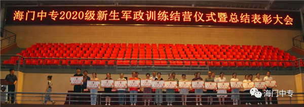 8月25日19:00,海门中专2020级新生军政训练汇报展演暨总结表彰大会在学校南操场隆重举行。南通市海门区委常委、海门区人武部部长李俊,海门中专校长徐忠携校长室全体成员,全体教官,系部管理团队,班主任和2432名新生参加了大会,大会由学生工作部主任张海华主持。 一、队列动作 展示军容军姿 步伐整齐,口号嘹亮,伴随着声情并茂的解说词,由包括中南产业学院在内的七大院系组成的七个训练营依次走过主席台。每个营除了有自然连以齐步方式通过主席台,还会有一个标兵连,他们在各营长的指挥下,表演了停止间转法、齐步立定、正步立定等项目。 二、红歌比赛 唱出精气神 军人的歌声比的不是优美,比的是力量和豪情。各营指挥员将手臂舞到最有力,各营的同学便将声音提到最天际。看谁的歌声最洪亮,你方唱罢,我登场,同学们都使出吃奶的力气,只为展现最好的自己,最好的营队。 三、教官表演 现铁血军风 沙场上,谁是真英雄?参加本次军政训练的教官们向大家展示真正的铁血男儿。一声爆喝,吓破敌胆,倒功表演,气吞山河,两两捉对,格斗擒拿,强将手下见真功!教官们的表演,让人震撼,博得了在场所有人的热烈掌声。 四、观看VCR 体味苦与甜 全体与会人员观看了由海门中专“光影青春工作室”社团制作的VCR《2020军训回顾》。 五、学生发言 谈感想决心 电信系黄燚煊同学,代表2432名2020级新生发言。 六、副校长军训总结 海门中专副校长茅一娟向关心学校军政训练的海门区人武部以及全体教官、全体班主任、系部管理团队表示了感谢。她回顾几天来的训练过程,总结训练成果,鼓励同学们调整状态尽快适应新的学习生活,传承好军训作风,规划好自己的美好人生。 七、书记宣读表彰决定 海门中专党委书记宋健宣读了训练标兵等表彰名单。 八、举行颁奖仪式 表彰决定宣读完毕后,主席台领导向各获奖集体和个人颁发了奖状。 九、校长宣布军训闭营 海门中专校长徐忠宣布2020级新生军政训练闭营。