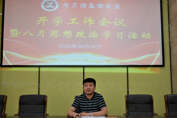 新学年,新目标。有担当,肯实干。电信系全体教师经过暑期的调整休息,再次回到了和顺的校园,以饱满的精神状态迎接新学期的到来。8月30日上午,电信系在E楼大师报告厅召开了新学期开学工作会议暨思想政治学习活动。电信系主任江勇主持会议并作了主题发言。