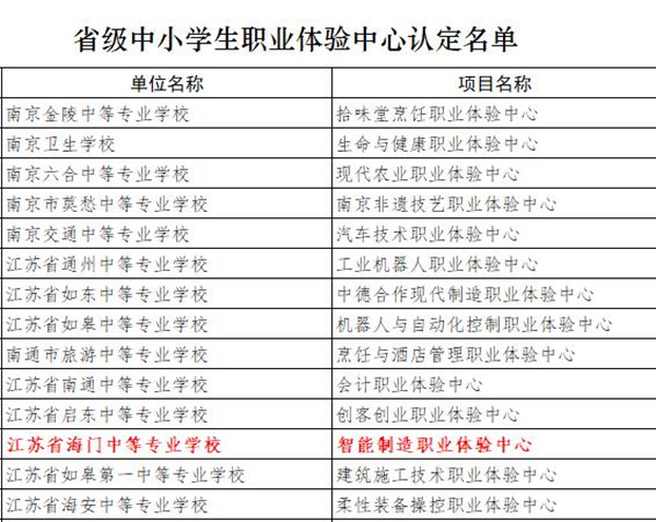 近日,经市级推荐,省教育厅组织专家审核并网上公示,机电系“智能制造职业体验中心”被认定为省级中小学生职业体验中心。