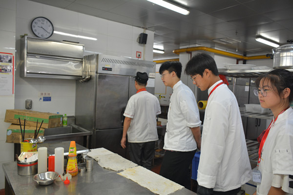 海门地区最大的千人宴会厅大气高雅;中西厨房整洁干净、员工操作规范;各地美食应有尽有;饼屋设备齐全,香味四溢……大部分学生们都是第一次如此近距离地接触五星级大酒店,都对酒店心生向往。