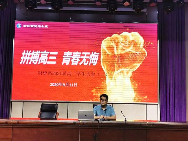 9月11日中午12:00,财贸系在文苑报告厅组织召开了2021届高三学生大会,全体高三学生及班主任参加了本次会议,会议由王飞主任主讲。