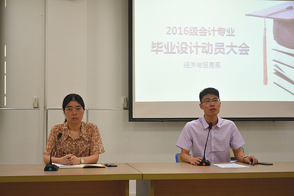 9月14日下午大课间,经贸系在C2楼203室召开16级会计专业毕业设计动员大会。经贸系施红华主任、陈忠平副主任,16级会计专业全体学生及班主任参加了此次动员大会。