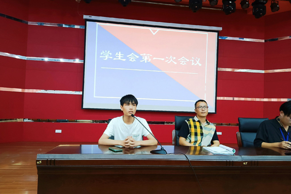 此次会议分为两个议程,第一项议程由学生会主席袁嘉浩和张宇航对学生会前阶段的工作情况做出总结,找出存在问题并针对问题提出改进措施。
