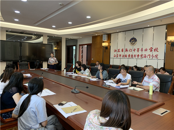 为了把准2020年学业水平测试备考方向,明确备考思路,进行有效的、有针对性的复习,9月16日上午,南通市教育科学研究院在我校图文信息大楼二楼阿里厅组织举行了南通市职业教育2020年英语学科学业水平考试复习专题活动。活动由如皋第一中专副校长陆晓丽主持。 会上,南通市第五届职业教育英语教科研中心组组长杨一丹对2020年中职英语学考复习指导做专题讲座。杨一丹以“稳扎稳打 备战学测”为主题,针对英语学测大纲和题库的改变,从政策解析、考纲解读、样题分析三个方面对中职英语学测进行了深入细致的剖析与解读,提出了夯实基础、精讲精练、强化交际、突出应用的复习迎考策略。 江苏省英语学测组组长、南通市教育科学研究院教研员黄斌对2020年全省中等职业学校英语课程学业水平考试大纲的修订进行了详细说明,对英语学测题库情况进行了具体的介绍,并对我市2020年英语学考复习工作作出了具体部署。 最后,与会人员对五届英语教科研中心组工作计划及2020年英语学考复习工作进行了研讨交流。大家畅所欲言,气氛热烈融洽,理清了思路,明确了后阶段教研组工作内容及复习迎考的教学策略和复习方向。 出席本次活动的有南通市第五届职业教育英语教科研中心组全体成员、南通市各职业学校英语中心组组长、英语教研组长、江苏省职业教育职味英语名师工作室全体成员。