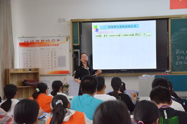 9月22日下午第三节课,钱琴老师在19YZ01班开设了一节题为《两角和与差的余弦》的校级公开课。财贸系朱娟副主任,杨军花老师以及数学组十多位教师参加了听课、评课活动。