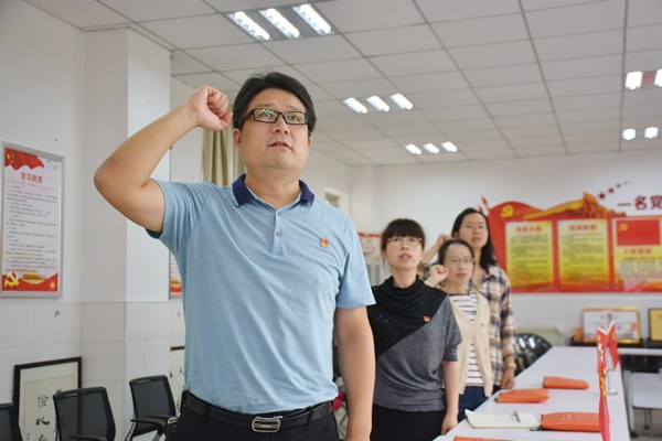 第四个议程是重温誓词。“我志愿加入中国共产党……随时准备为党和人民牺牲一切,永不叛党。”铿锵恢宏的誓词,强烈震撼着在场的每一位党员,一字一句,神圣而豪迈,体现了党员同志们对中国共产党的无限忠诚。