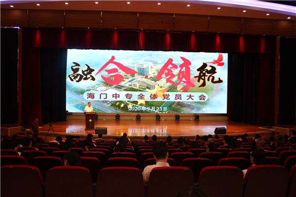 9月23日下午3点30分,海门中专党委在謇公湖科教大会堂举行新学期全体党员大会。学校党委领导班子成员和全体党员出席本次大会。党委委员、党委办公室主任洪龚明主持本次会议。大会在雄壮的国歌声中拉开帷幕、隆重开启。 组团宣讲 先锋示范 激励前行 本次先锋大讲坛邀请到“新思想·新理论·新宣讲”宣讲团讲师张国新和宋劲乔,为我们讲述部级劳动模范、龙信集团董事长陈祖新和首届海门工匠戴建峰的先进事迹。两位海门人为海门发展刻下了最闪光的轨迹,用匠人之心、先锋之行为我们一路领航。全体党员在倾听中感受“平凡中的伟大”,生动的宣讲为海专校园撒下激情与奋斗的种子。 扬帆东方 耀眼海门 奋进你我 扬帆东方,直济沧海。全体党员观看微视频《扬帆东方》。视频让我们感受到了长三角这艘“超级巨轮”释放出协同共振新势能。区委十四届十次全会号召,海门党员干部面对海门撤市设区新机遇,进一步解放思想,实现思维方式和工作方式的全面转变。海门中专党员同志要充分利用这一契机,向陈旧的自己告别,努力实现自身蜕变,为学校和海门强区跨越贡献自己一份力量。 诵读党章 对标找差 指针引领 会议的第三项议程是诵读党章。党章是中国共产党的行动指南。先谈遵守,再谈热爱;先谈规范,再谈情怀。党章诵读常诵常新,每一次诵读、每一遍诵读都有新的领悟。党章是标准、是方向,每个党员都能在对标对表中寻找发展中的自己。 书记报告 聚焦融合 精准施策 会议的第四项议程是党委书记宋健作《党建引领 融合共生 内涵发展》下半年党建工作专题报告。宋健围绕“一个点五个面”,(“一个点”是指党建融合工程,“五个面”是指下半年党建工作的五个重点方面),最后,宋健又用“四种力量”向全体党员提出建议和要求。全体党员同志要将“融合·领航”思想贯穿到学校发展的全过程,以更实的工作举措落实党建与教育教学的深度融合,努力办好人民满意的职业教育。 重温誓词 坚定信仰 汲取力量 本月是党员陈忠平、沈豪杰和宋建华政治生日月。全体党员用热烈掌声祝贺三位同志政治生日快乐。随后,三位同志上台领誓,全体党员起立,齐声宣誓。传承初心、牢记使命;铮铮誓言、掷地有声。 本次党员大会结束了,但是坚定的信仰、坚强的信念和全力以赴的行动从来没有停息过,它一直都在,在每个海专人的血液里、灵魂中。 脚踏实地,坚守信仰,定能一路高歌,从优秀迈向领航!