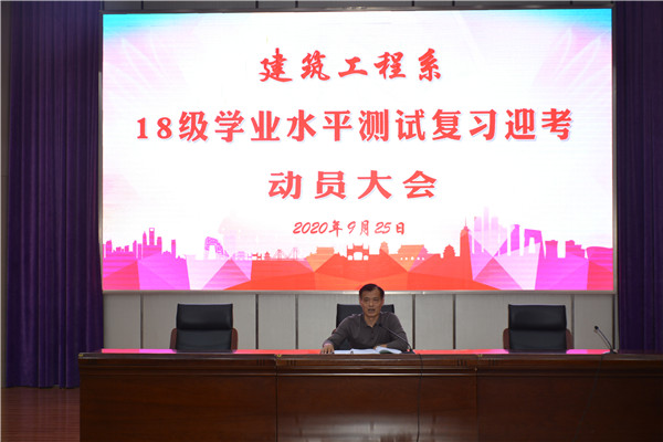 9月25日下午,建工系在B1幢二楼报告厅组织召开了18级学业水平测试动员大会,全体18级学生参加了会议,会议由张永辉副主任主持。