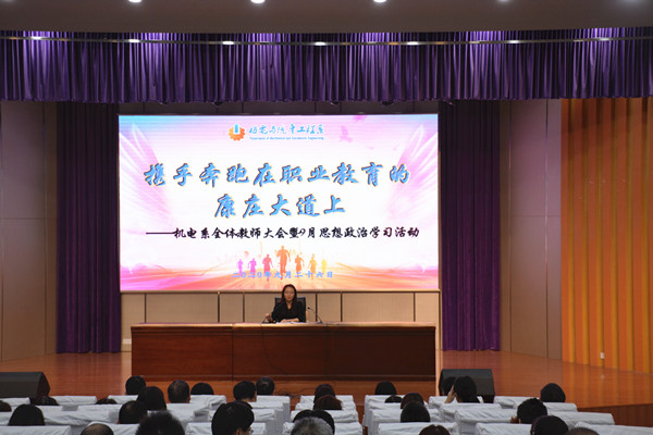 9月26日下午15:00,机电系在文苑楼报告厅召开了以“携手奔跑在职业教育的康庄大道上”为主题的全体教师大会暨九月思想政治学习活动,机电系主任吴樱樱主持会议。
